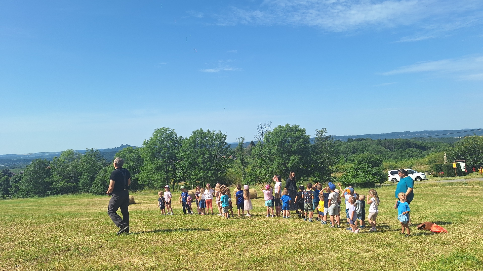 „Jé co to padá oblohy?“ ..a všichni i s Beruškami a Ještěrkami jsme s křikem utíkaly a sbíraly. Někteří koukaly k obloze na to krásné letadlo, které nám předvádělo obraty, otočky a všechny možné akrobacie.